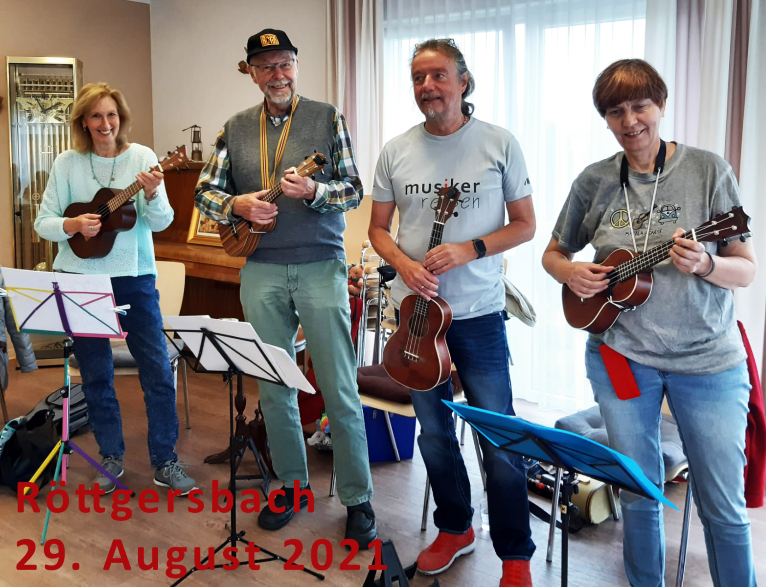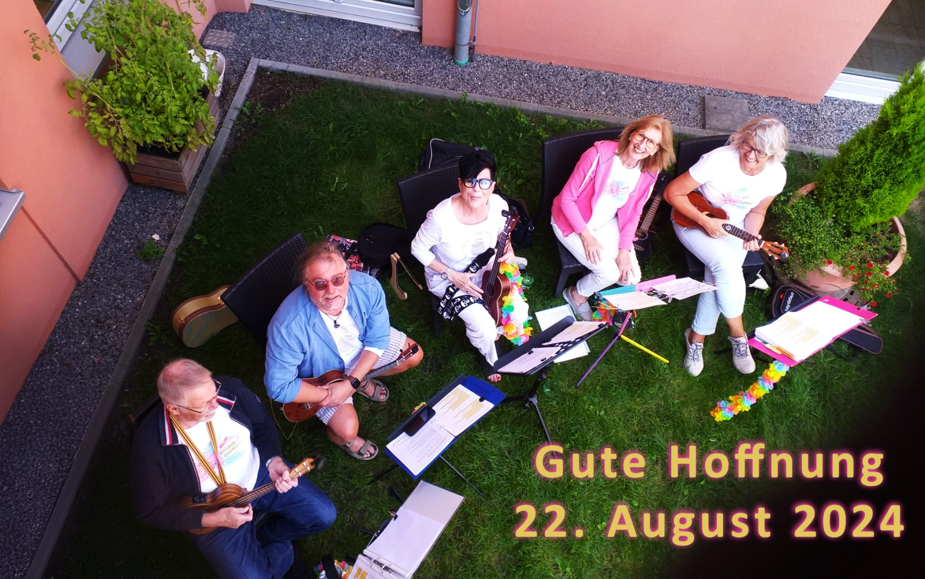 Die „Ukulelis“ bilden sich 2020 aus den Mitgliedern des Ukulele-Kurses. Unser Repertoire besteht hauptsächlich aus „alten deutschen Schlagern“, die wir gerne in Duisburger Seniorenheimen präsentieren, natürlich pro bono.